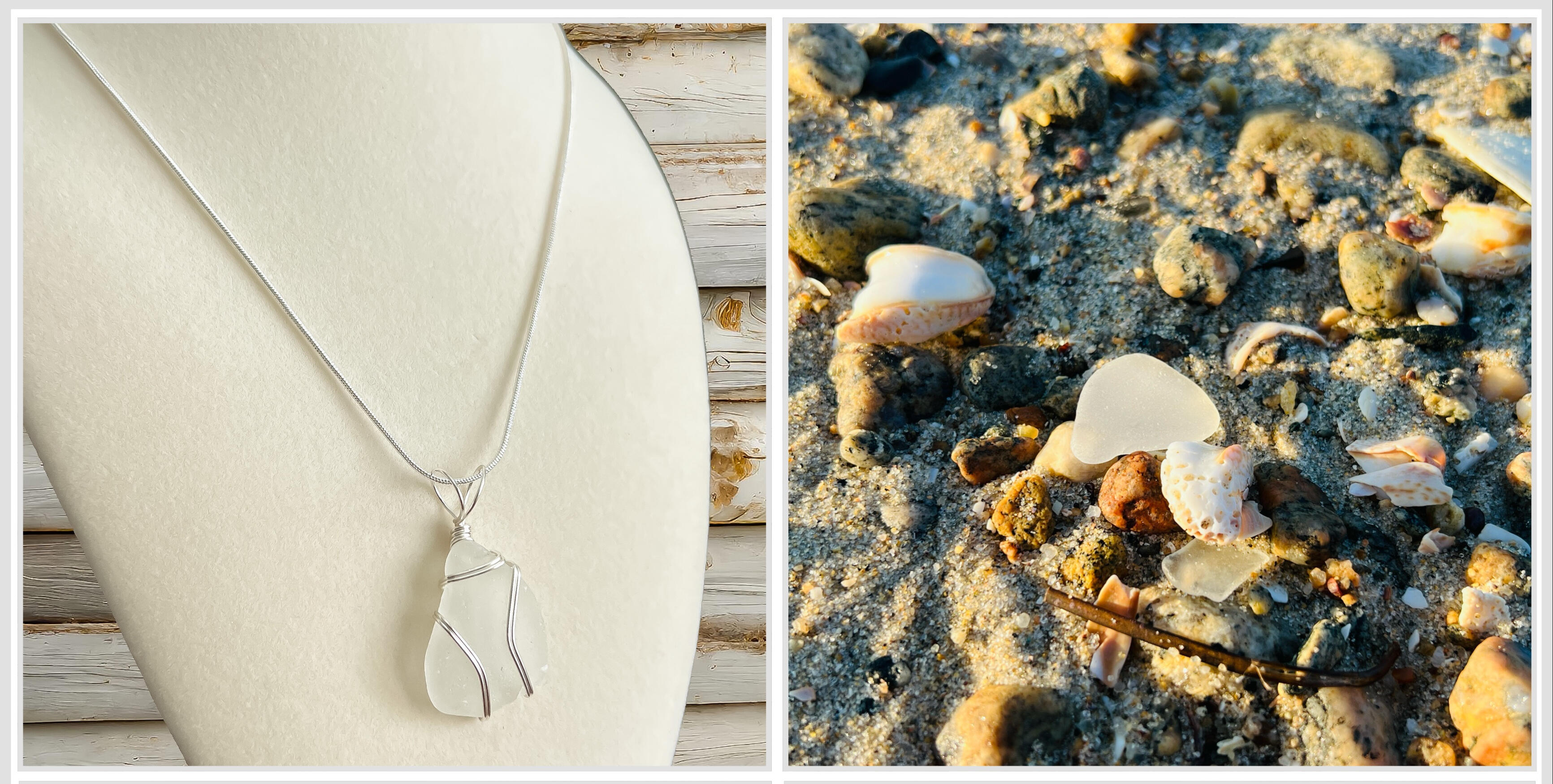 Fall in love with sea glass and shop the romance on Etsy and MakerPlace by Michaels. The sea glass I use to create my handmade jewelry and artwork is is eco-friendly. Each piece in my collection is artist found and has been tumbled by the ocean. Sea glass isn't just a material, it's a journey, a memory, and a piece of history that holds the mystery of being lost and found again. Shop the romance now!